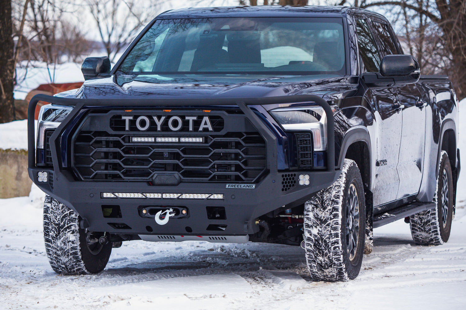 Conçu pour ceux qui exigent plus de leur camion, le pare-chocs avant Freeland Industries pour Toyota Tundra 3e génération allie protection maximale, lignes modernes et intégration OEM. Pensé autant pour le travail que pour l’aventure, il transforme l’avant du camion sans compromis sur la fonctionnalité.
